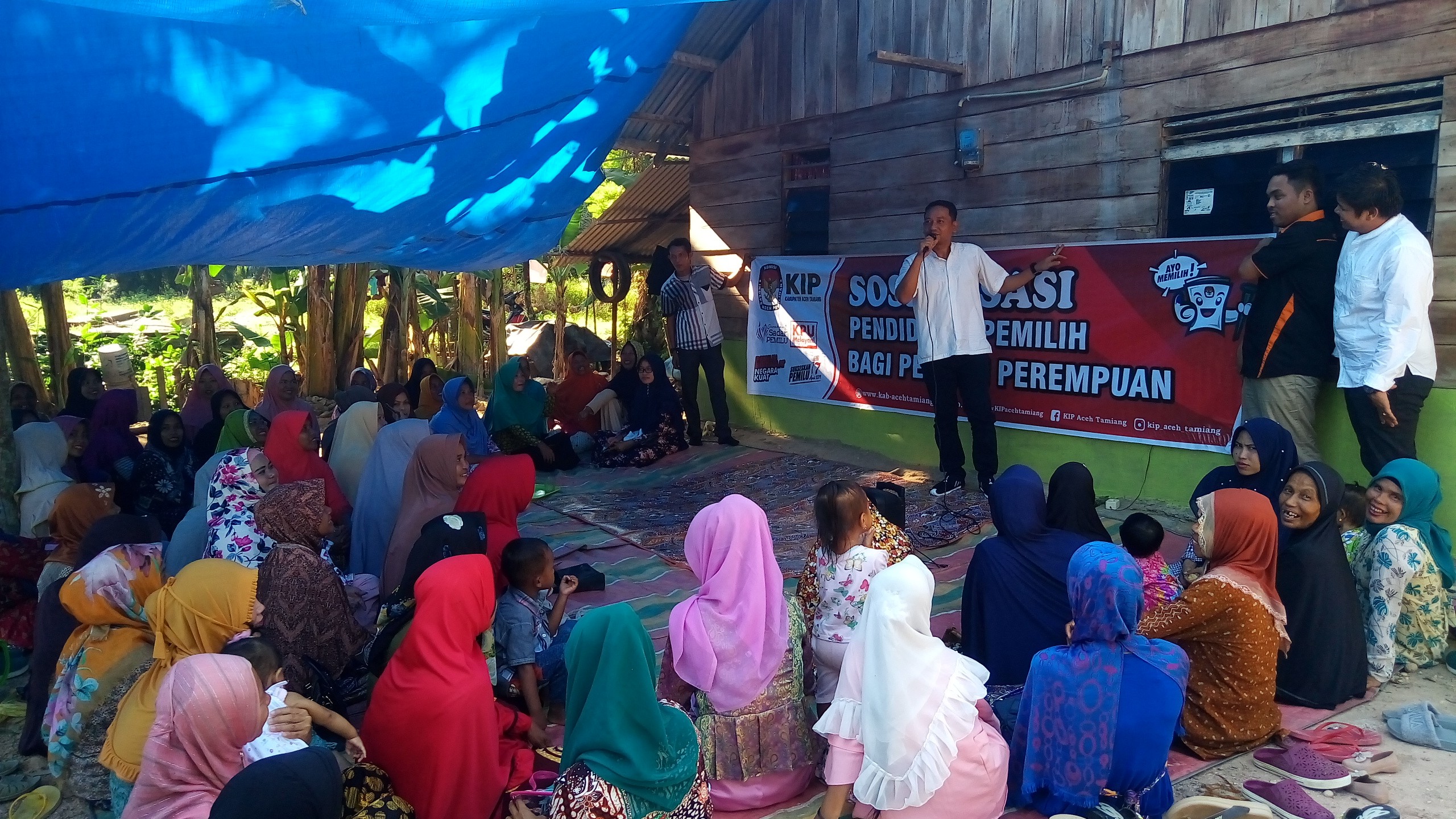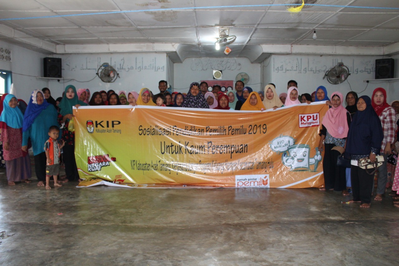 Tamiang Hulu, 31 Januari 2019 Komisi Independen Pemilihan Kabupaten Aceh Tamiang Sosialisasi Pendidikan Pemilih Perempuan di Dusun Bandar Baru Afdeling 7 Kampung Perkebunan Pulau Tiga Kecamatan Tamiang Hulu, Kegiatan ini dilaksanakan bertujuan untuk meningkatkan partisipasi pemilih pada Pemilu tahun 2019 materi yang disampaikan pada kegiatan ini, pentingnya Pemilu 2019, cek Daftar Pemilih Tetap, tanggal dan jam pemungutan suara yaitu 17 april 2019 pukul 07.00 - 13.00, Pengenalan partai politik peserta Pemilu, Pengenalan pasangan calon presiden dan wakil presiden, pengenalan calon anggota DPD, tata cara pindah memilih, jumlah dan jenis surat suara, tatacara pencoblosan di Tempat Pemungutan Suara, cara mencoblos surat suara yang benar, cara memerangi Hoax Pemilu dan ajakan anti golput, politik uang dan politik sara.