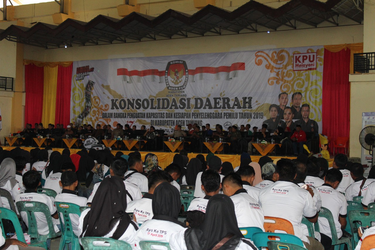 Karang Baru, Komisi Independen Pemilihan (KIP) Kabupaten Aceh Tamiang menggelar Konsolidasi Daerah Dalam Rangka Peningkatan Kapasitas dan Kesiapan Penyelenggara Pemilu Tahun 2019. Kegiatan dilaksanakan di Gedung Olah Raga (GOR) Kabupaten Aceh Tamiang Kamis (20/12/2018). Ketua KIP Aceh, Samsul Bahri yang membuka acara mengatakan, untuk menciptakan Pemilu 2019 yang berintegritas maka penyelenggara pemilu ditiap tingkatan (baik itu KIP Aceh Tamiang, Panitia Pemilihan Kecamatan (PPK) maupun Panitia Pemungutan Suara (PPS) harus menjaga independensi dan kejujuran. Dia pun mengingatkan bahwa penyelenggara telah bersumpah dan berjanji untuk memenuhi tugas dan kewajiban sebagai penyelenggara pemilu. “Bekerja dengan sebaik-baiknya,” tutur Samsul. Ketua KIP Aceh Tamiang, Ishak Ibrahim melanjutkan salah satu tujuan digelarnya konsolidasi daerah ini adalah agar penyelenggara pemilu didaerahnya bersinergi bersama-sama dalam menyukseskan setiap tahapan. Dia juga mengingatkan suksesnya pemilu tidak hanya diukur dari langsung, umum, bebas, rahasia, jujur dan adil (luber dan jurdil) tapi juga seberapa besar partisipasi masyarakat yang terlibat langsung didalamnya. “Oleh karena itu dengan konsolidasi ini saya berharap penyelenggara pemilu lebih gencar lagi dalam melakukan sosialisasi agar setiap masyarakat memahami hak dan kewajiban sebagai warga negara,” kata Ishak. Kegiatan ini selain dihadiri oleh 36 anggota PPK dan 675 anggota PPS, juga hadir Bupati Aceh Tamiang yang diwakili oleh Asisten I Pemerintah Kabupaten Aceh Tamiang, Kapolres Aceh Tamiang, Kasdim MAKODIM 0117/Aceh Tamiang, Ketua MPU Aceh Tamiang dan anggota Forkopimda lainnya, Panitia Pengawas Pemilih Kabupaten Aceh Tamiang, seluruh Ketua Partai Politik serta Forum Koordinasi Pimpinan Kecamatan (Forkopimcam) se-Kabupaten Aceh. (PPID-KIP Kabupaten Aceh Tamiang)