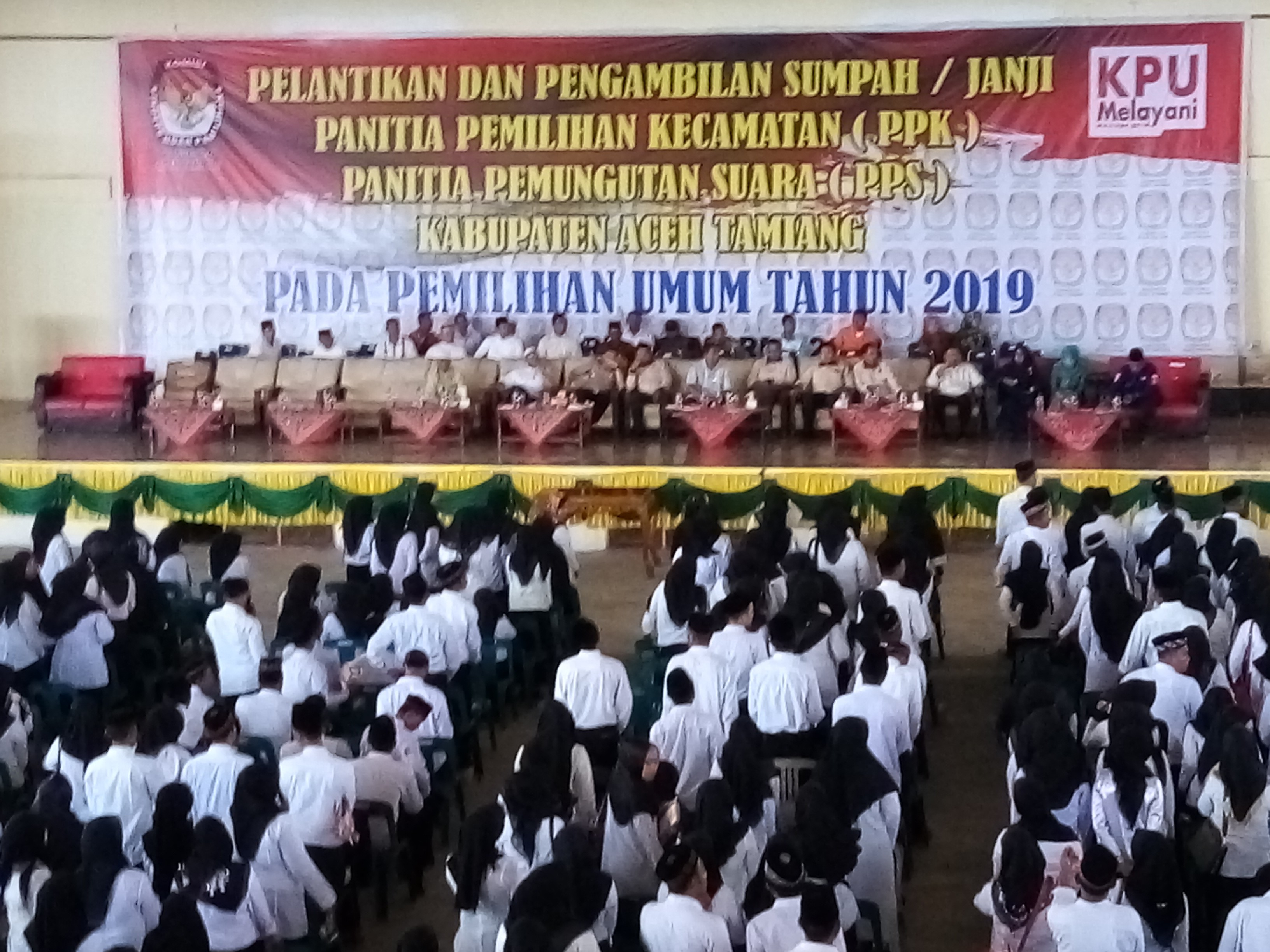 Pelantikan dipimpin langsung Ketua Komisi Independen Pemilihan (KIP) Kabupaten Aceh Tamiang M. Alhamda. Dalam sambutannya, dia menekankan sebagai penyelenggara pemilu netralitas dalam setiap perilaku dalam keseharian selama dalam pelaksanaan pemilu. Sehingga pelaksanaan pemilu legeslif, presiden dan wakil presiden tahun 2019 berjalan sesuai dengan prinsip-prinsip penyelengara pemilu kata M. Alhamda di Gedung Olah Raga Kabupaten Aceh Tamiang.