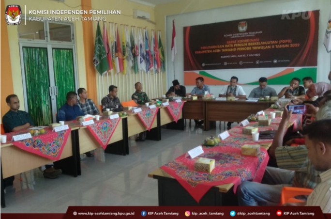 Jum;at (01/7/2022) KIP kabupaten Aceh Tamiang melaksanakan Rapat Koordinasi Pemutakhiran Data Pemilih Berkelanjutan (PDPB) untuk periode Juni (Triwulan II) Tahun 2022 di Aula KIP Kabupaten Aceh Tamiang, Jalan Ir.H.Juanda Komplek Perkantoran Pemerintah Kabupaten Aceh Tamiang.