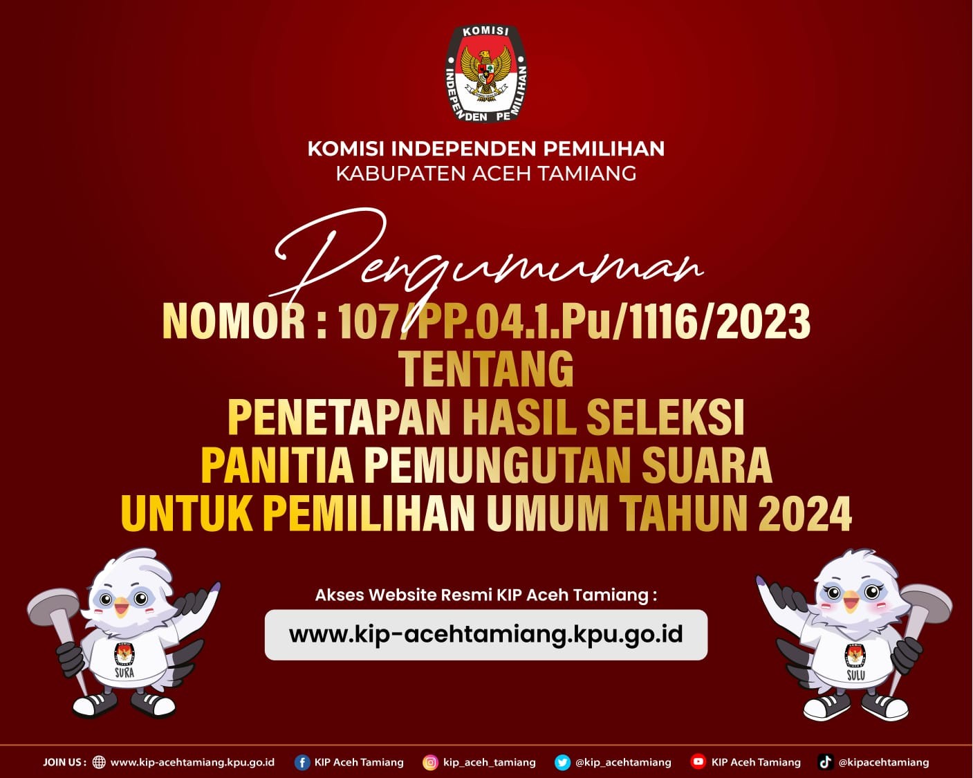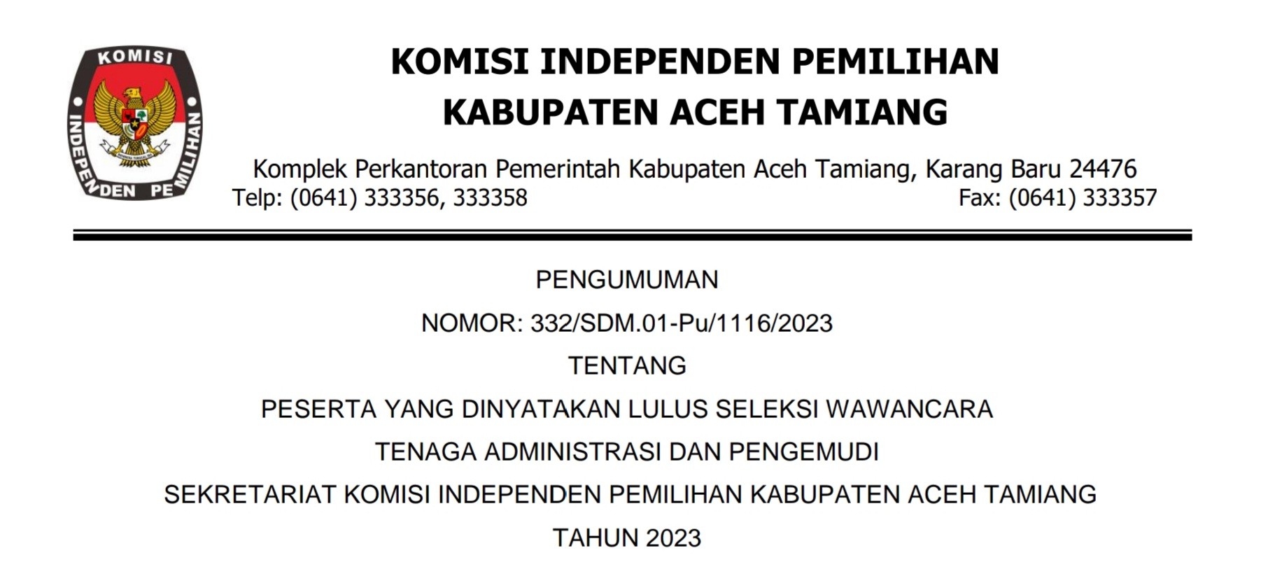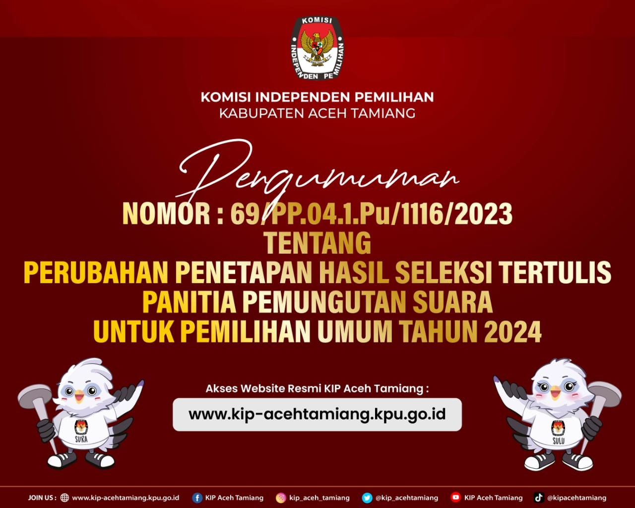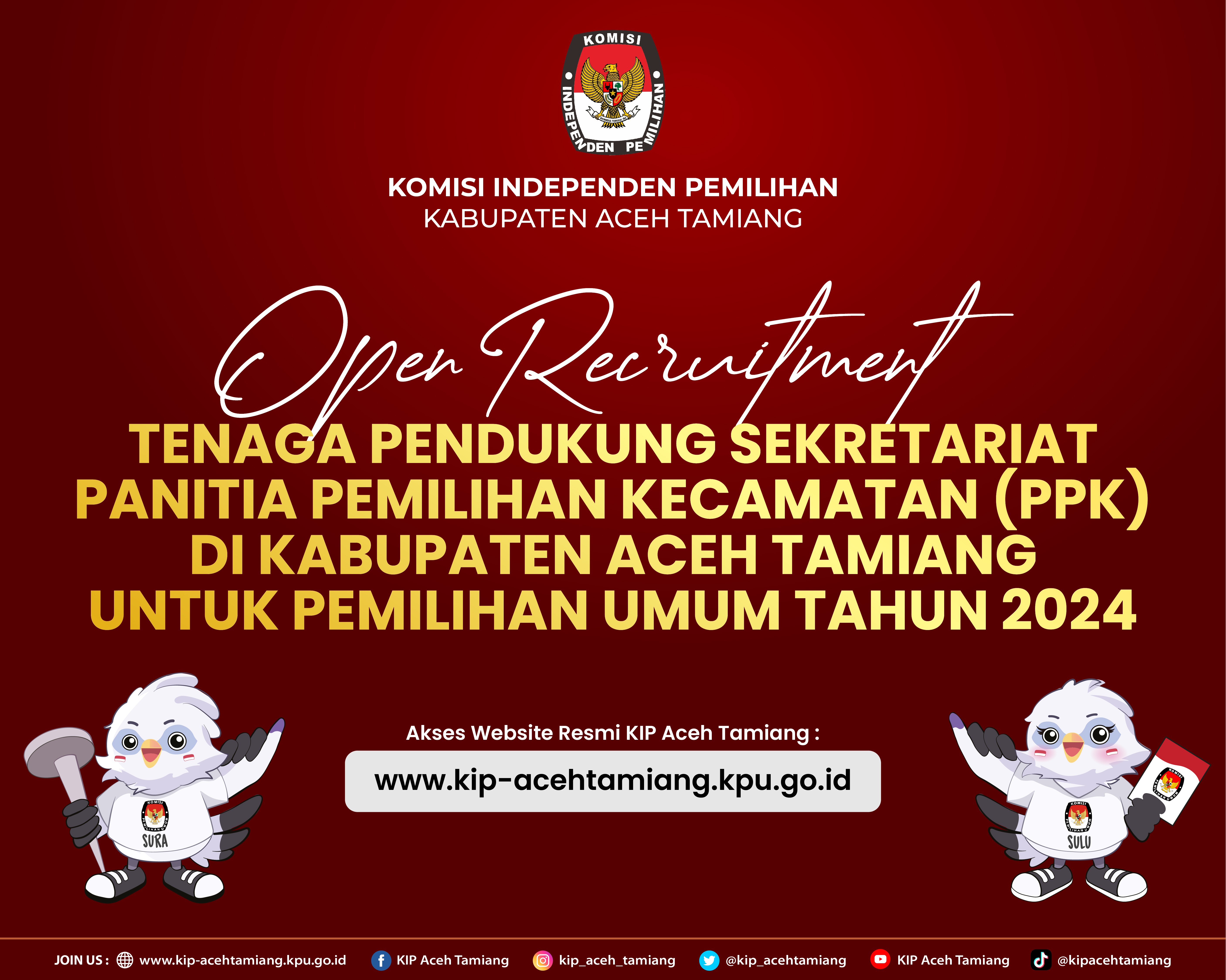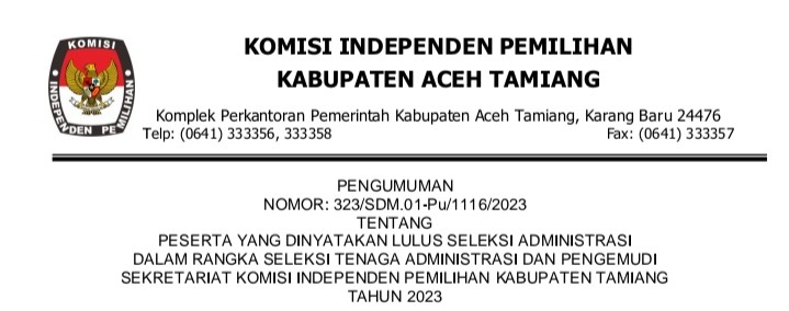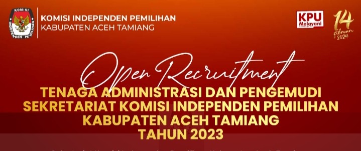 Sekretaris Komisi Independen Pemilihan Kabupaten Aceh Tamiang memberi kesempatan kepada putra-putri terbaik untuk menjadi Tenaga Pendukung pada Sekretariat Panitia Pemilihan Kecamatan dalam Kabupaten Aceh Tamiang Tahun anggaran 2023. Untuk melihat pengumuman silahkan KLIKDISINI