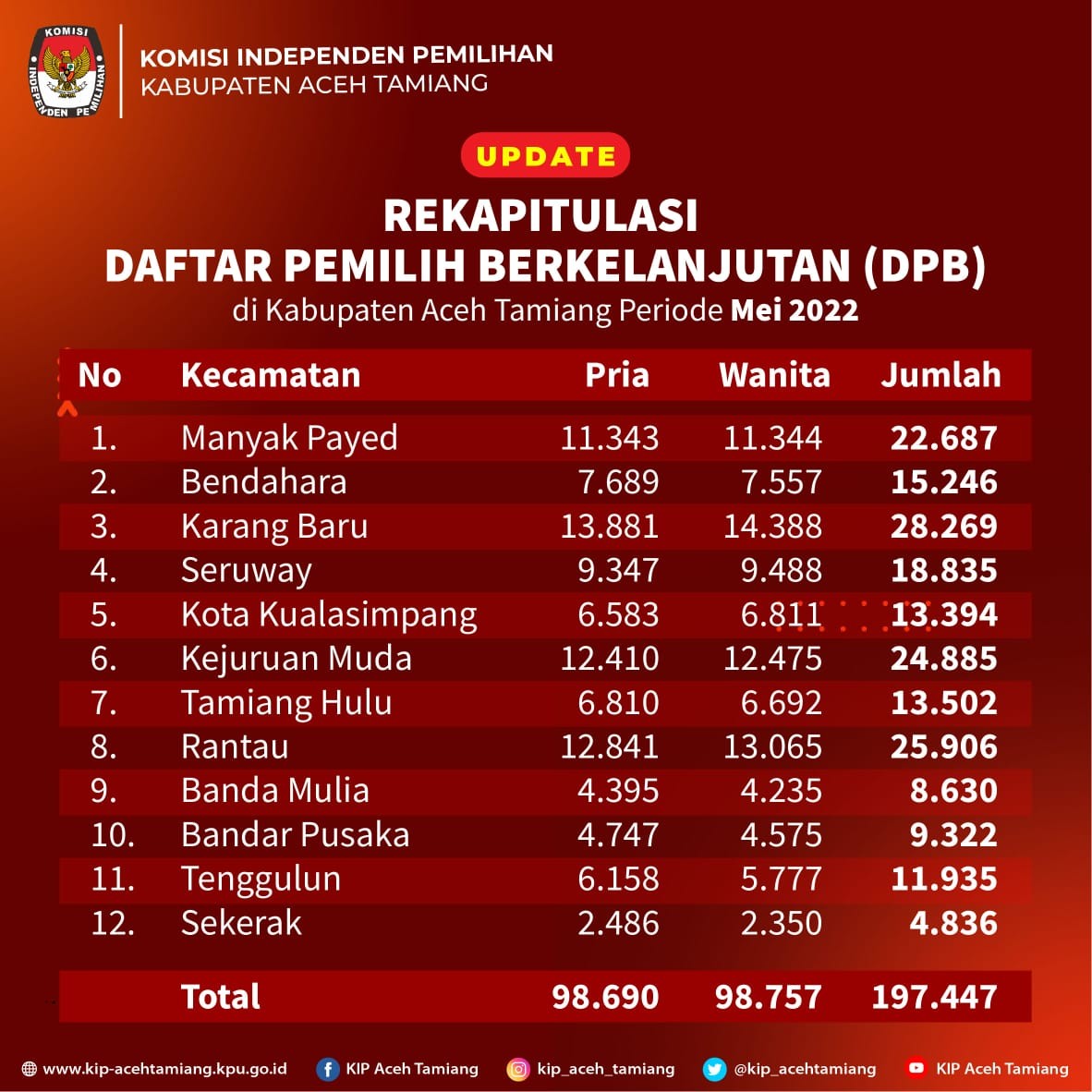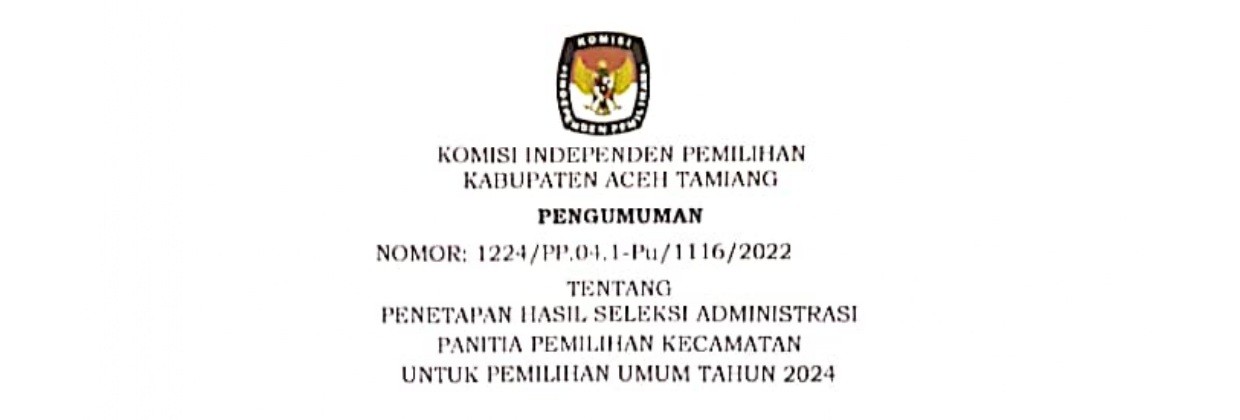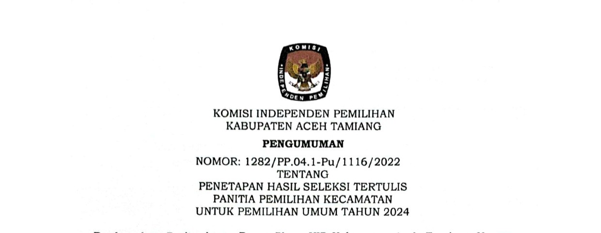 Karang Baru, 9 Desember 2022, Komisi Independen Pemilihan Kabupaten Aceh Tamiang menetapkan Hasil Ujian Tulis Calon Panitia Pemilihan Kecamatan dalam Pemilu 2024, untuk melihat Pengumuman Hasil Seleksi Ujian Tertulis Panitia Pemilihan Kecamatan Untuk Pemilihan Umum Tahun 2024 KLIKSINI